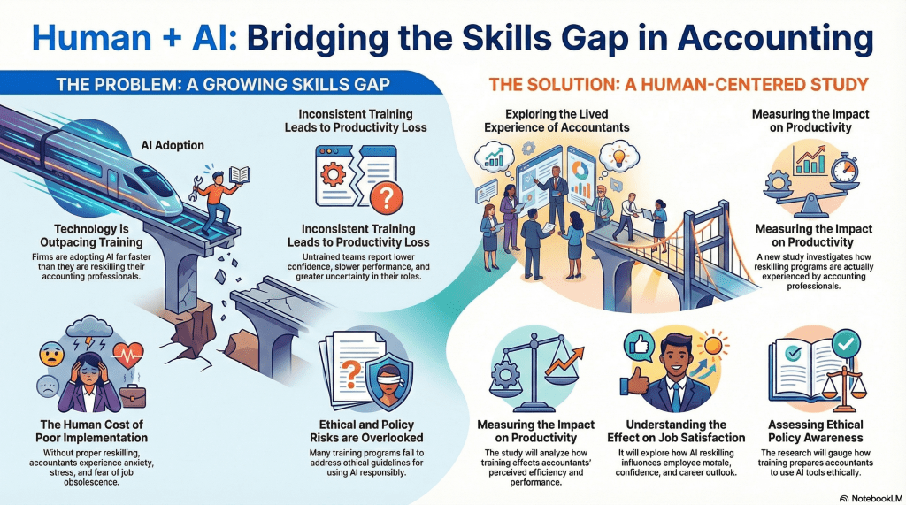 Recognizing that the AI skills gap cannot be solved by more technology, a new research initiative is taking a fundamentally different approach: it is asking the accountants themselves what is happening to them — and measuring the actual outcomes of structured versus unstructured reskilling.